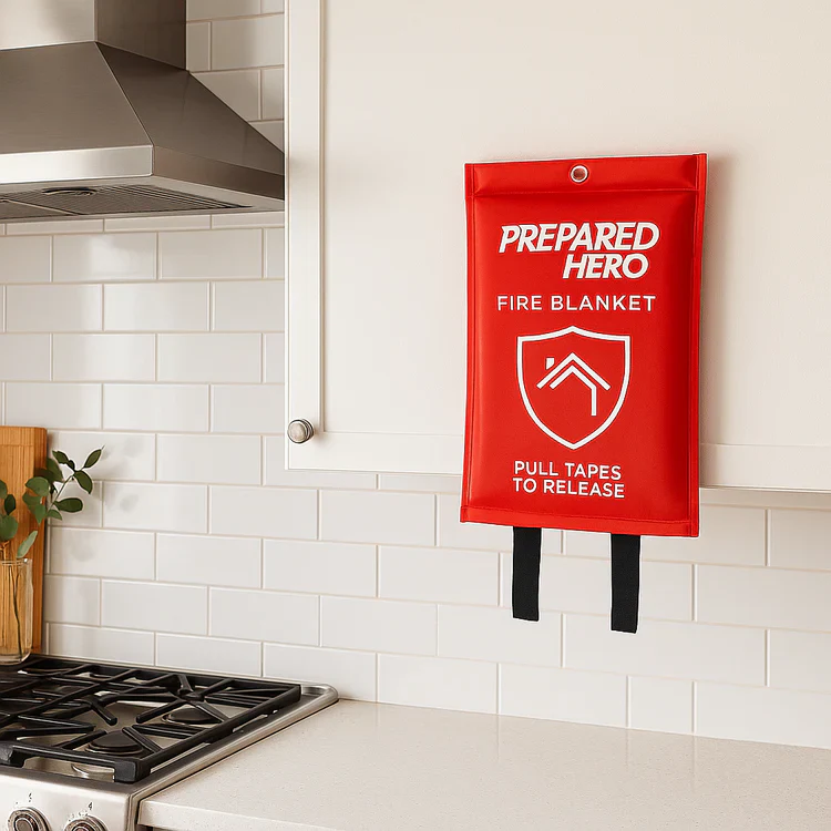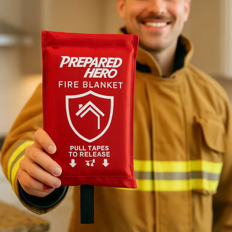 Prepared Hero is an emergency fire blanket designed to stop common fires in seconds—without the weight, complexity, or mess of traditional extinguishers. Made with premium, heat-resistant fiberglass, it’s safe, simple, and effective for grease, electrical, and household fires. Perfect for kitchens, RVs, boats, workshops, and anywhere fire risks exist, Prepared Hero puts life-saving control in your hands.